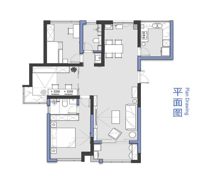 那一抹藍-杭州公館-現代風格設計-裝修效果圖